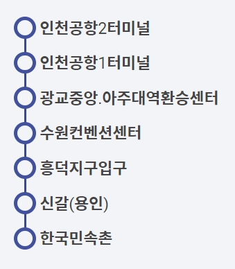 ✅용인공용터미널 (47948) - 동백월드메르디앙.동백경남아너스빌 (29372) -어정역 (29372) - 강남대역.강남대입구 (29307) - 세종그랑시아.한성1차아파트 (29265) - 신갈역.새릉골 (29246) -연원마을LG.벽산아파트.구성역 (29195) -보정역.보정고등학교.동아솔레시티 (29209) - 죽전역.포은아트홀.죽전2동행정복지센터.신세계경기점 (29199) - 풍덕고교사거리 (29760) - 현대홈타운.현대성우5차 (47954) - 광교마을.린병원.독바위 (47767) - 수원광교박물관 (04057) -인천공항T1 -인천공항T2