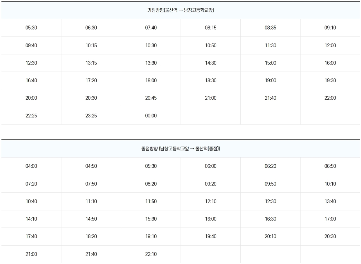 | 울주군 남창고등학교앞 | 04:00 | 22:10 |