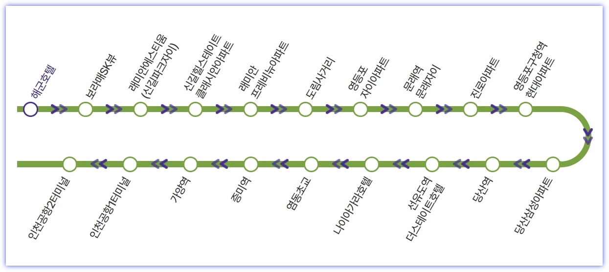 ✅해군호텔 (19851) -신길바다마을아파트.보라매sk뷰 (19336) -래미안에스티움 (19326) -신길힐스테이트클래시안아파트 (19239) -코끼리유통 (19389) -도림사거리 (19556) -도림마을금고 (19186) -문래자이아파트 (19305) -진로A (19854) -현대아파트 (19167) -당산삼성아파트 (19181) -당산역 (19178)- 한신아파트.선유도역 (19210) -나이아가라호텔 (16902)- 염동초교 (16893) -증미역 (16730) -가양역 (16602) - 인천공항 T1 - 인천공항 T2
