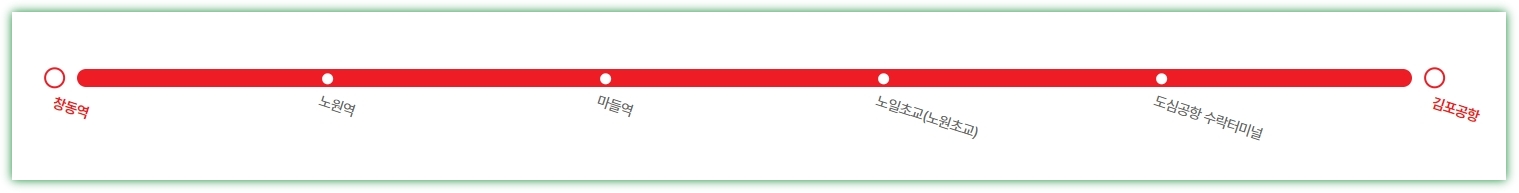 창동역에서 출발하여, 노원역, 마들역, 도심공항 수락터미널을 정차한 후, 김포공항으로 직행하는 노선으로 도봉지역에서 김포공항을 갈 때 많은 분들이 이용하는 공항버스입니다.